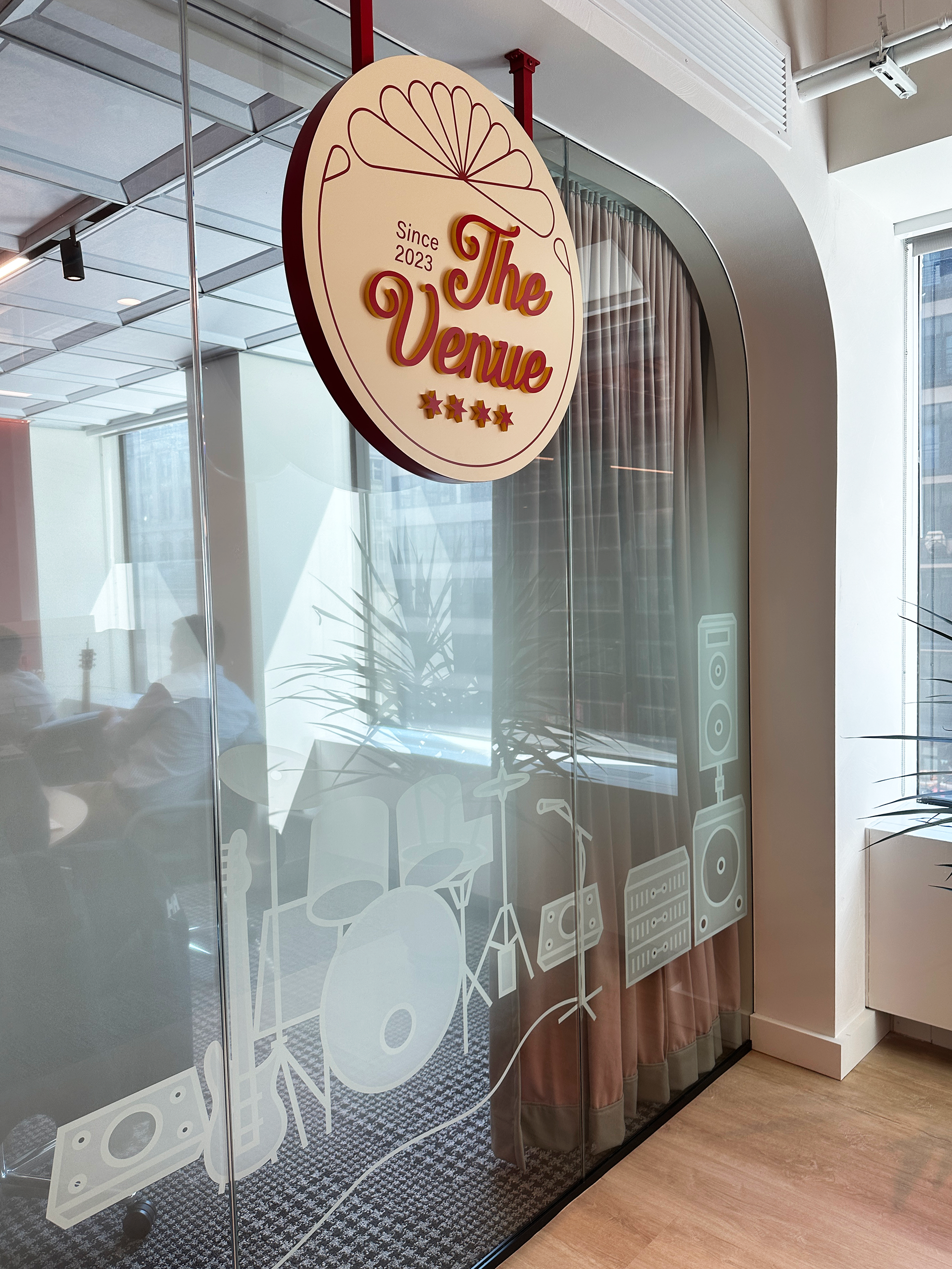 A space that celebrates Chicago's rich music scene across genres, venues and festivals. Exploring the deep, rich colors and dark intimate setting of jazz clubs like the Green Mill Lounge in the design execution.